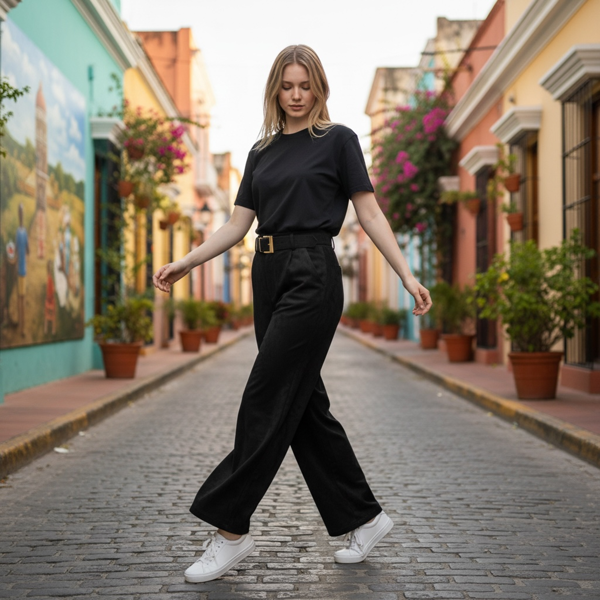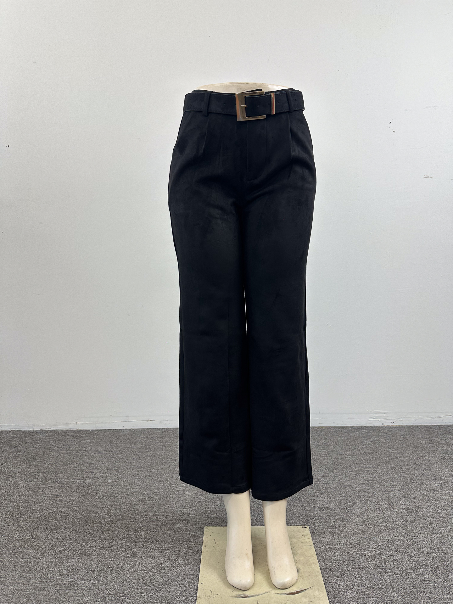 Suede Women’s Pants Straight Cut with belt included.